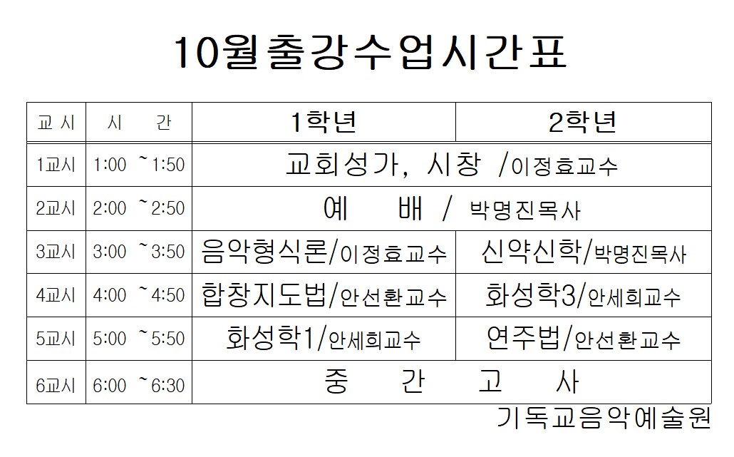245.25년 10월 출강수업 시간표
